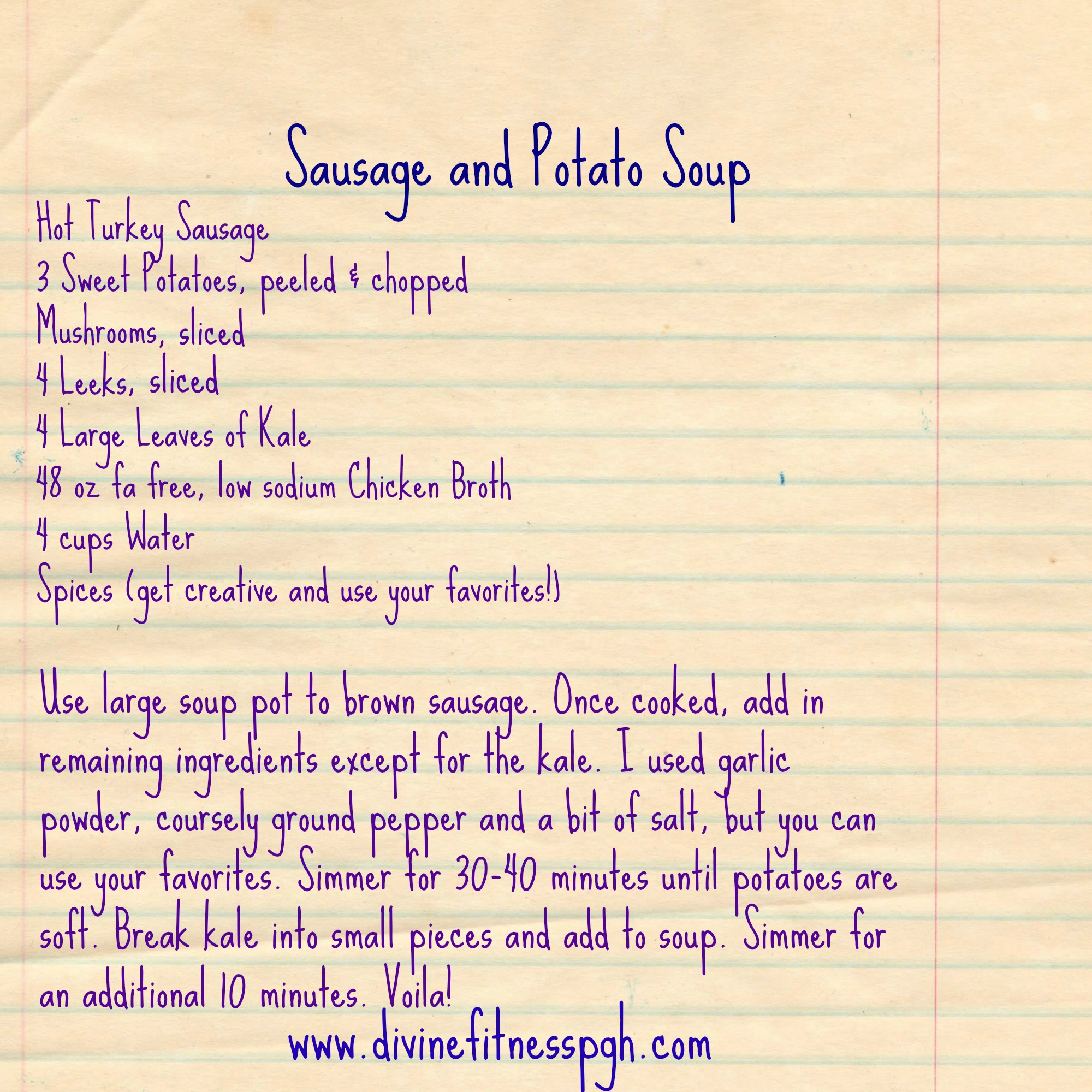 With the snow blowing around out there, it is hard to deny that winter is coming. One thing I hate is being cold, so I figured I should try my hand at making soup. For a first time experiment, it isn’t too shabby! I really like the contrast of the hot sausage and the sweet potatoes. This made about 8 servings. Enjoy!!