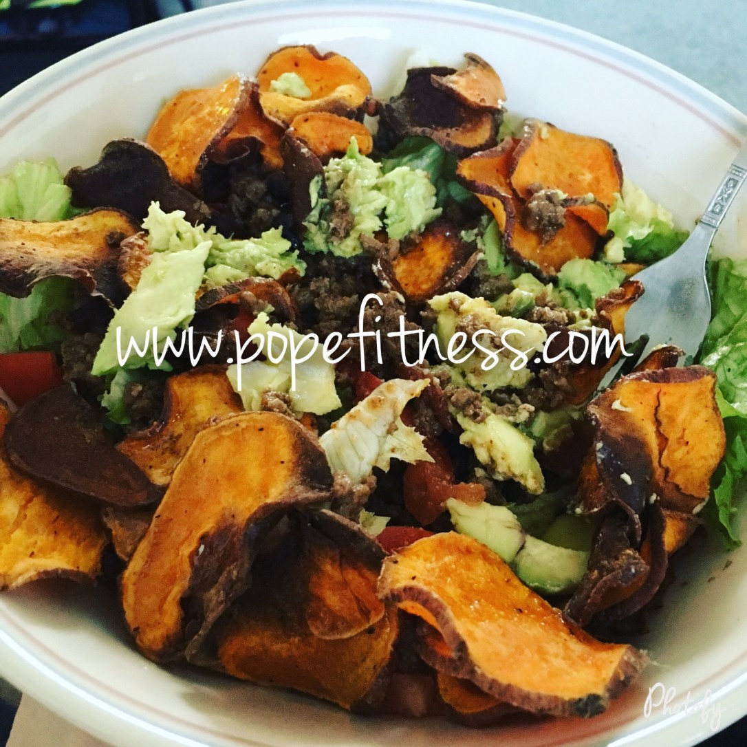 It was a must that I found an alternative that would keep me happy while trying my best to complete these 30 days. I did some research and found a few recipes and then ended up coming up with my own blend for the taco seasoning. Then, I baked some sweet potato chips as a topper.