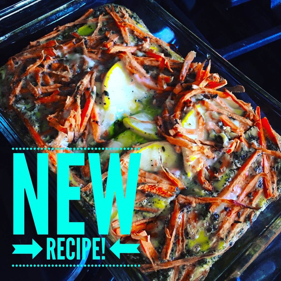 This morning, I wanted to get back to following the Whole 30 plan. I threw together this little number and was so happy with how it turned out. A normal strata layers bread in the egg mixture, but that is a no-no with this plan. I sliced up some zucchini and squash and julienned some sweet potatoes. So maybe it would be better labeled as an egg casserole, but I felt like being fancy. OK?? I think the best part about this is that you can really add whatever veggies or spices you want in this dish.