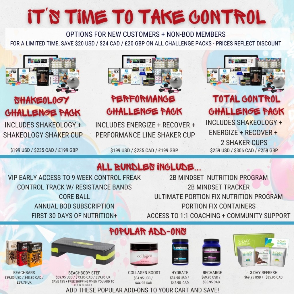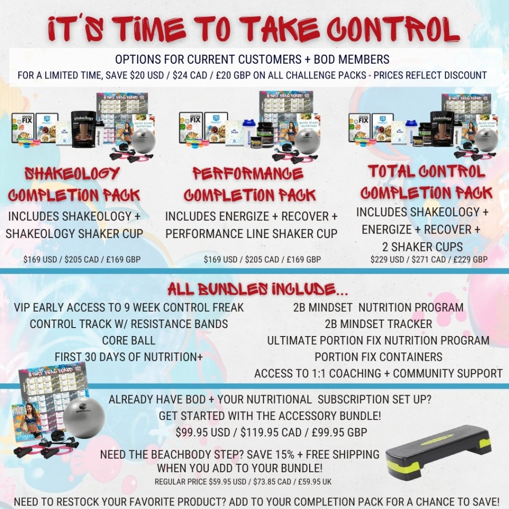 All 9 Week Control Freak Challenge and Completion Packs include BOTH UPF and 2B Mindset – our premium nutrition plans, so we will be able to focus on the nutrition program that works best for you. This combination of nutrition and fitness is amazing!